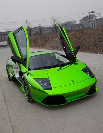 | Lamborghini Murcielago mạ crôm màu xanh lá. Ảnh: Autoblog. |