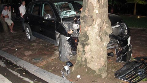 sát hồ Gươm rồi tiếp tục đâm vào gốc sấu ven đường.