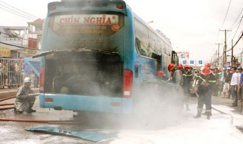 Trước đó, vào 9h20 sáng ngày 8/6 tại quốc lộ 13, thuộc địa phận phường Hiệp Bình Chánh, quận Thủ Đức, TP. HCM cũng xảy ra một vụ xe khách bốc cháy làm 35 hành khách hoảng loạn.