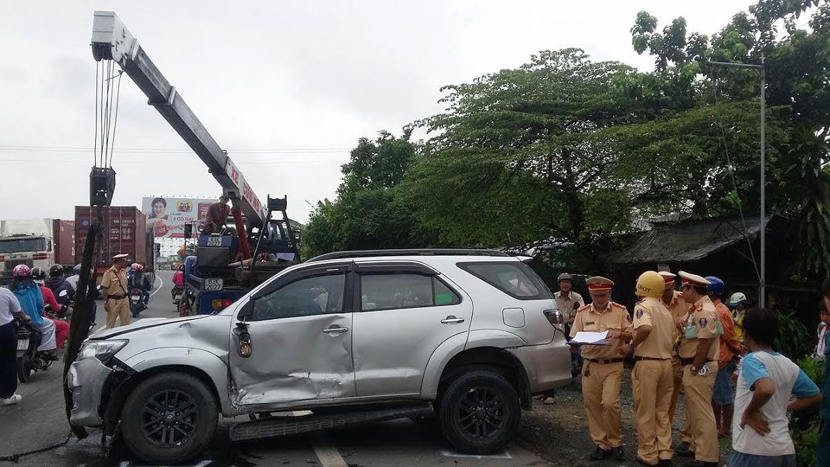 CSGT tiến hành khám nghiệm hiện trường vụ tai nạn