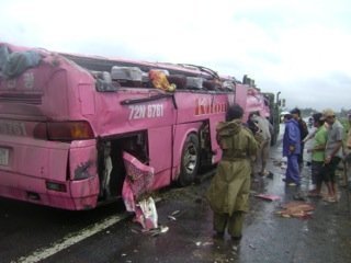 Vào thời điểm trên, xe khách BKS 72N-6761, chở 41 hành khách do tài xế Lý Vĩnh Lộc (SN 1976, ở thị trấn Tam Quan, huyện Hoài Nhơn, tỉnh Bình Định) điều khiển, chạy hướng Bà Rịa- Vũng Tàu đi Bình Định, đã bất ngờ lao xuống ruộng và lật ngược.