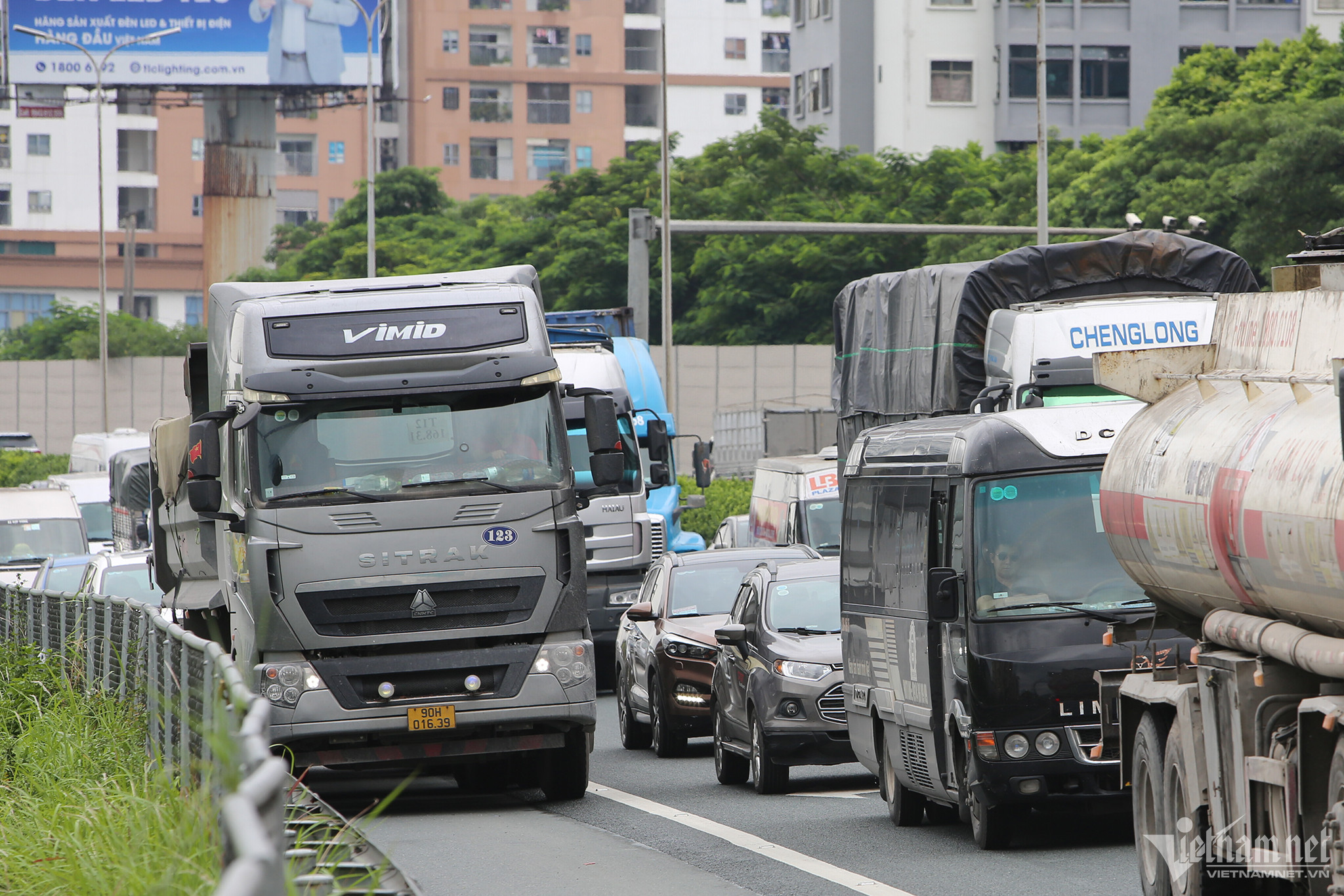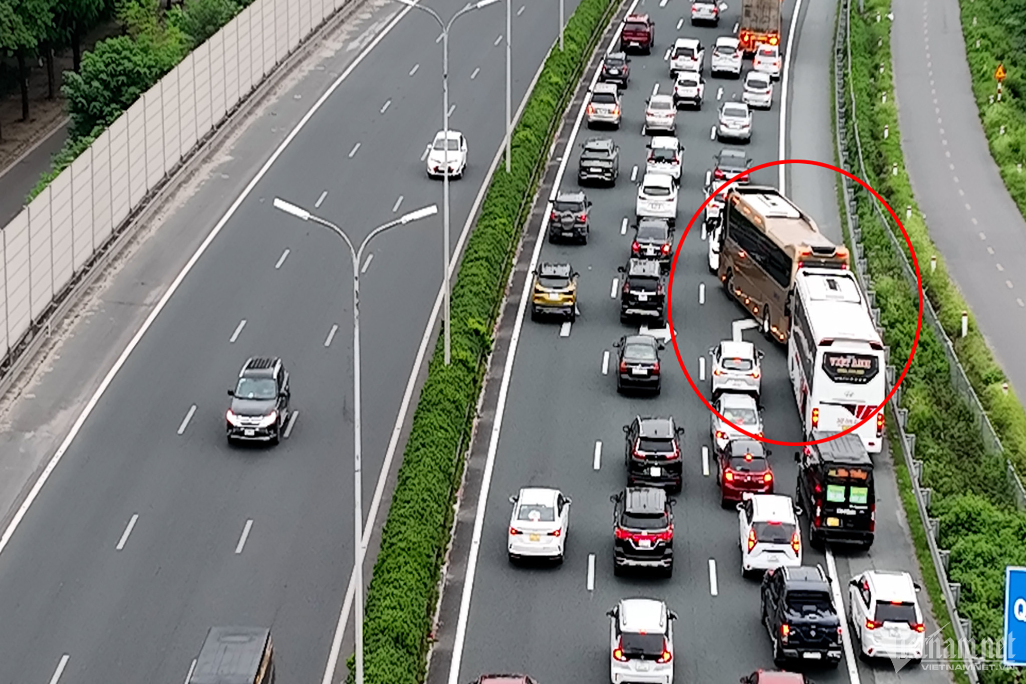 Ùn tắc xảy ra, nhiều tài xế xe khách đã bất chấp nguy hiểm để luồn lách, "chiếm" làn đường khẩn cấp.