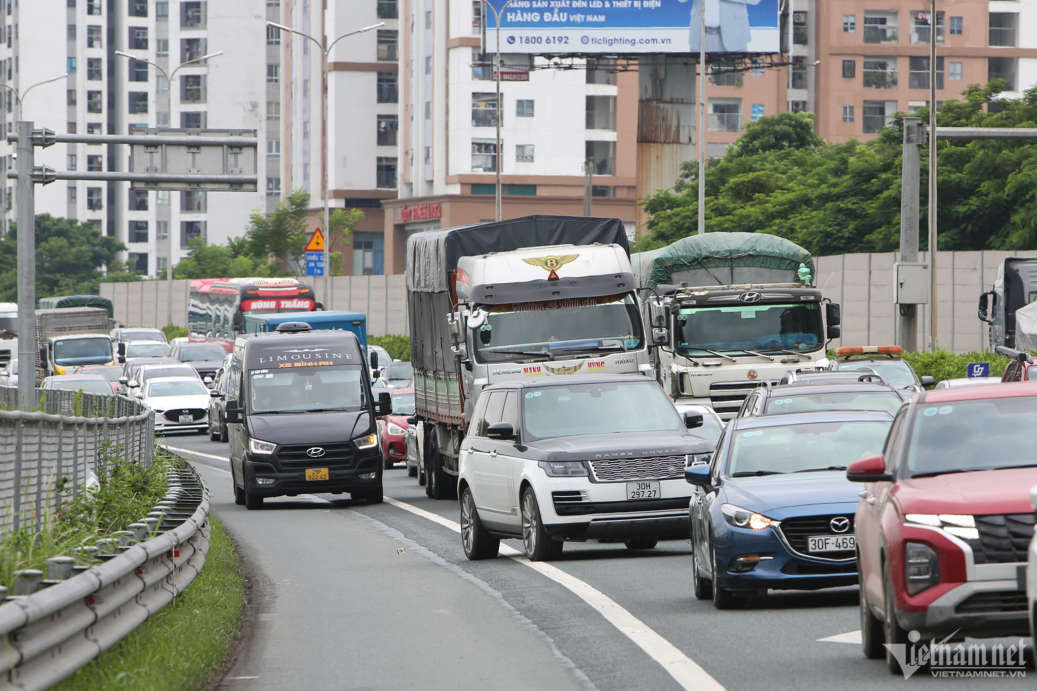 Đáng nói, các xe này sau khi vượt qua ô tô khác đang phải di chuyển chậm vì ùn tắc đã chuyển làn, "chen hàng" gây ùn tắc giao thông.