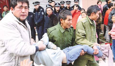 Một học sinh bị thương được đưa tới bệnh viện sau vụ tai nạn ở Hengnam, Hồ Nam. (Ảnh: China Daily)
