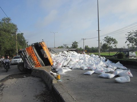 Rạng sáng 6/8, xe đầu kéo 70K- 2195 kéo theo rơ-mooc chở hàng trăm bao bột mì lưu thông trên quốc lộ 22 đã gây ra tai nạn sau khi đổ dốc cầu An Hạ (xã Tân Sơn Nhì H. Hóc Môn TP.HCM) theo hướng về TP.HCM khoảng 300m.