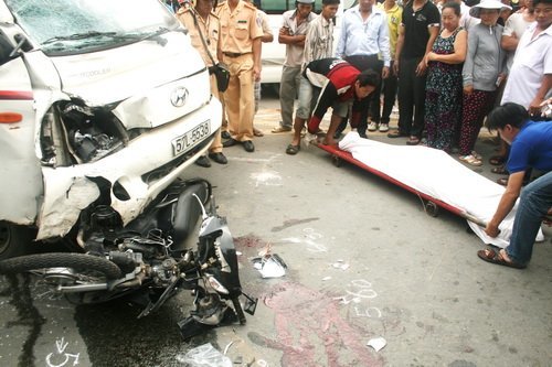 Cú va chạm quá mạnh này đã làm 4 người trên xe máy ngã xuống đường. Một nam một nữ chết ngay tại chỗ.