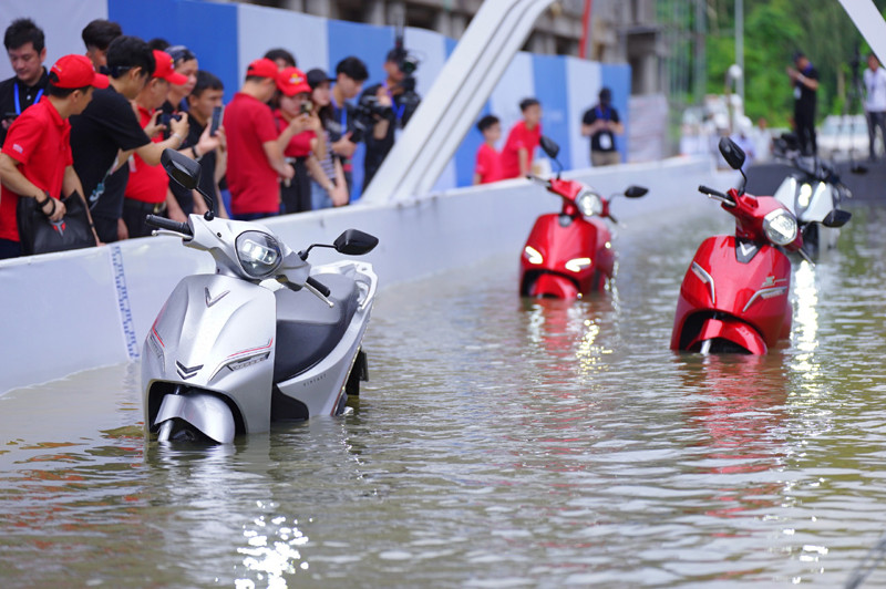 Tại một sự kiện diễn ra ở Hải Phòng đầu tháng 7, hình ảnh những chiếc xe máy điện thế hệ mới của VinFast lội nước phăng phăng trên đường thử với mực nước cao tới 0,5 m đã gây ấn tượng mạnh với đông đảo cộng đồng. Bất ngờ hơn, những mẫu xe này còn dễ dàng vượt qua thử thách ngâm nước sâu trong suốt 30 phút và vẫn hoạt động bình thường.