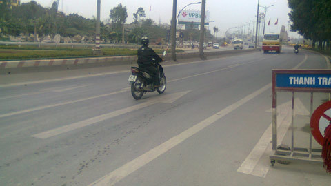 Dòng người điều khiển xe máy cứ nhìn nhau, chần chừ rồi phóng thẳng qua cầu. Cả buổi sáng 8/2, ở cả hai đầu cầu không hề thấy bóng dáng của lực lượng chức năng chốt chặn, xử lí những trường hợp vi phạm.