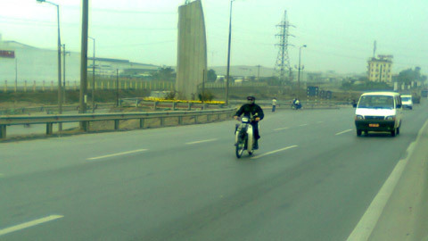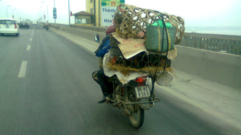 Xe máy vô tư qua lại trên cầu Thăng Long trong ngày 8/2/2011.
