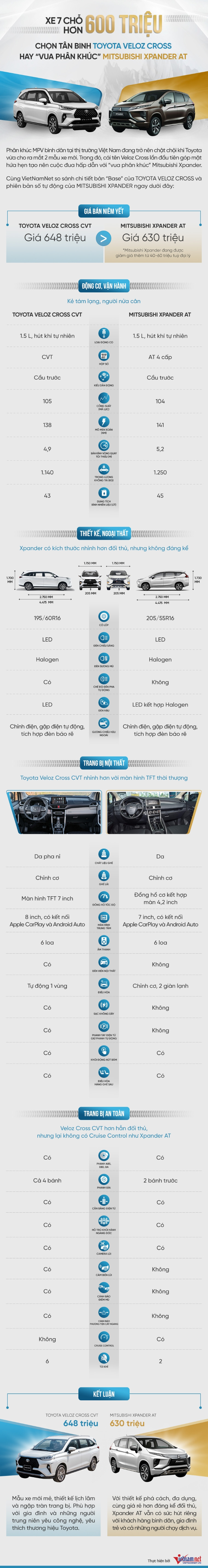 Xe 7 chỗ hơn 600 triệu: Chọn Toyota Veloz Cross hay "vua phân khúc" Mitsubishi Xpander