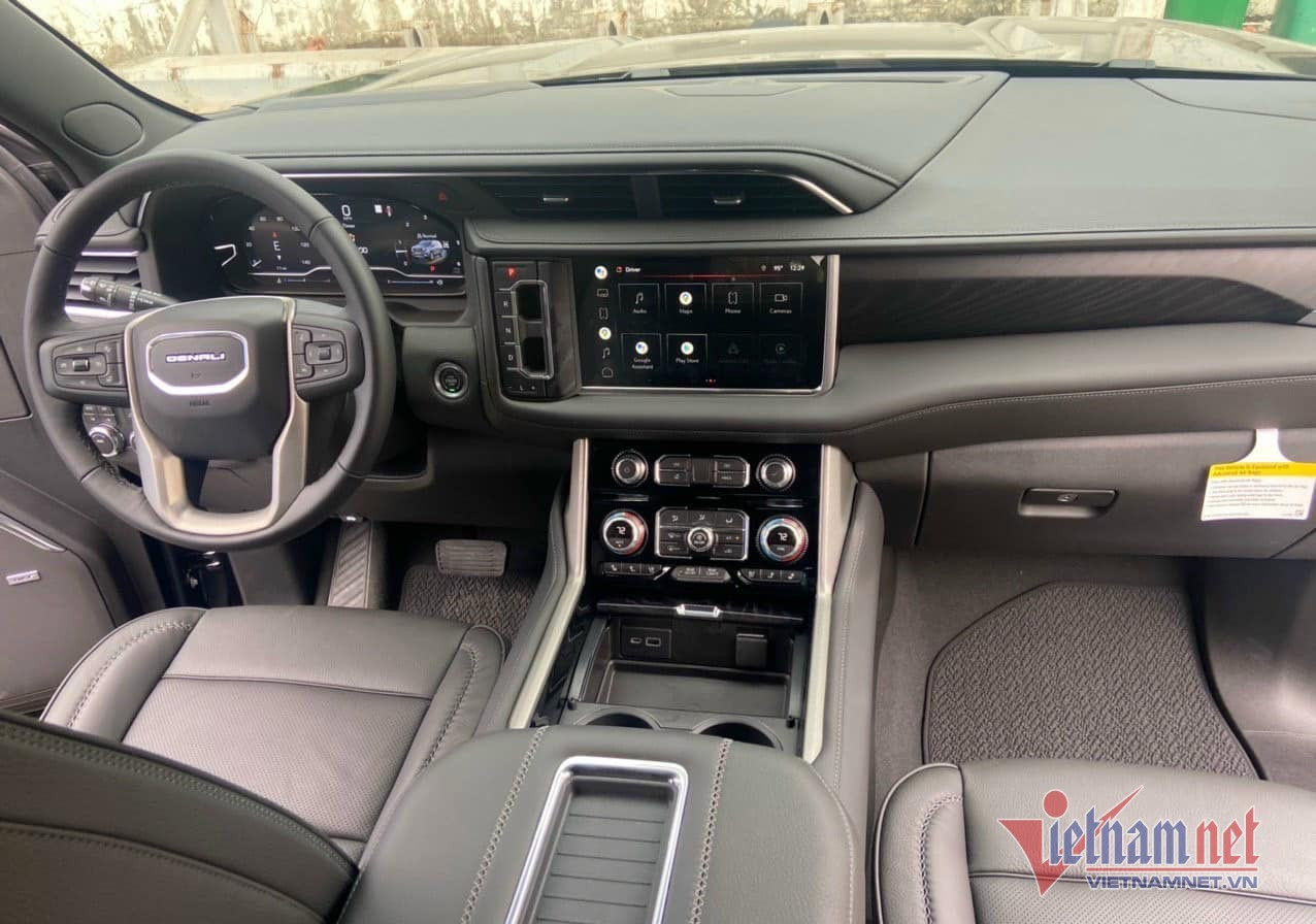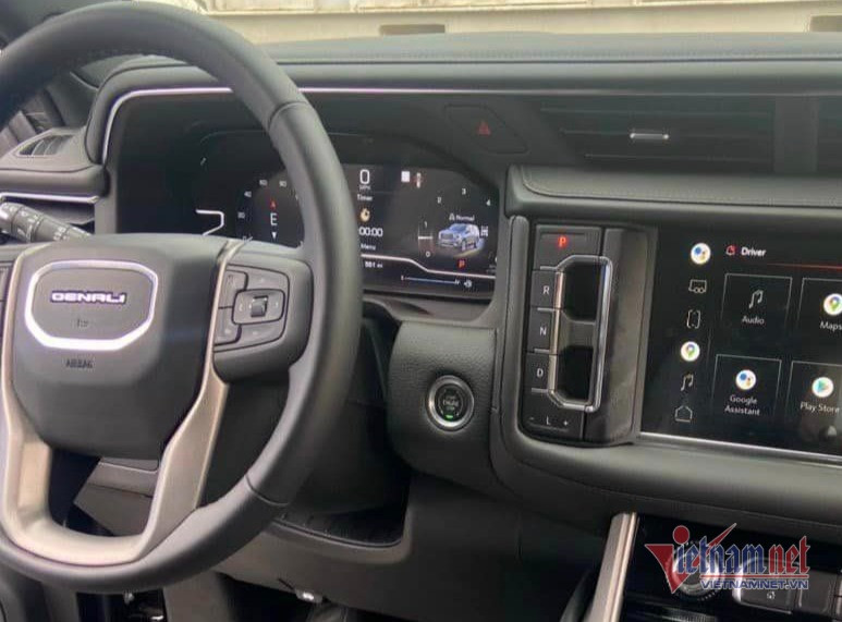 Trên bệ trung tâm ngay sau vô lăng là các nút điều bấm điều khiển hộp số thay vì dạng cần số truyền thống. Bên cạnh đó GMC Yukon Denali 2023 đã thay đổi cụm đồng hồ sau vô-lăng dạng đồng hồ cơ học ở bản cũ sang màn hình cỡ lớn hiện đại hơn và thể hiện đa thông tin cũng như các chế độ an toàn.