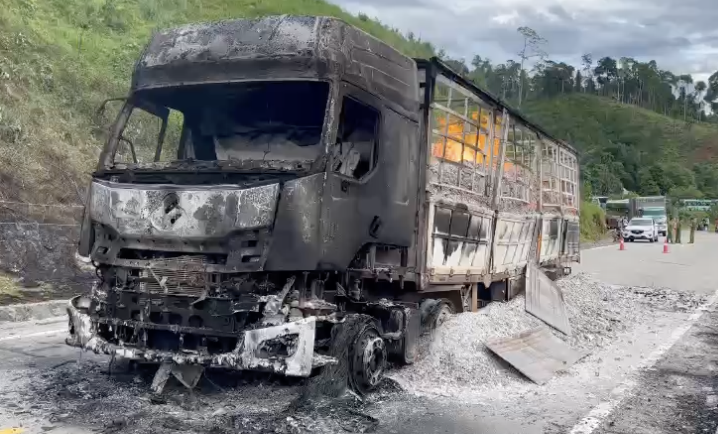 Vụ cháy không gây thiệt hại về người, nhưng toàn bộ xe tải bị thiêu rụi.