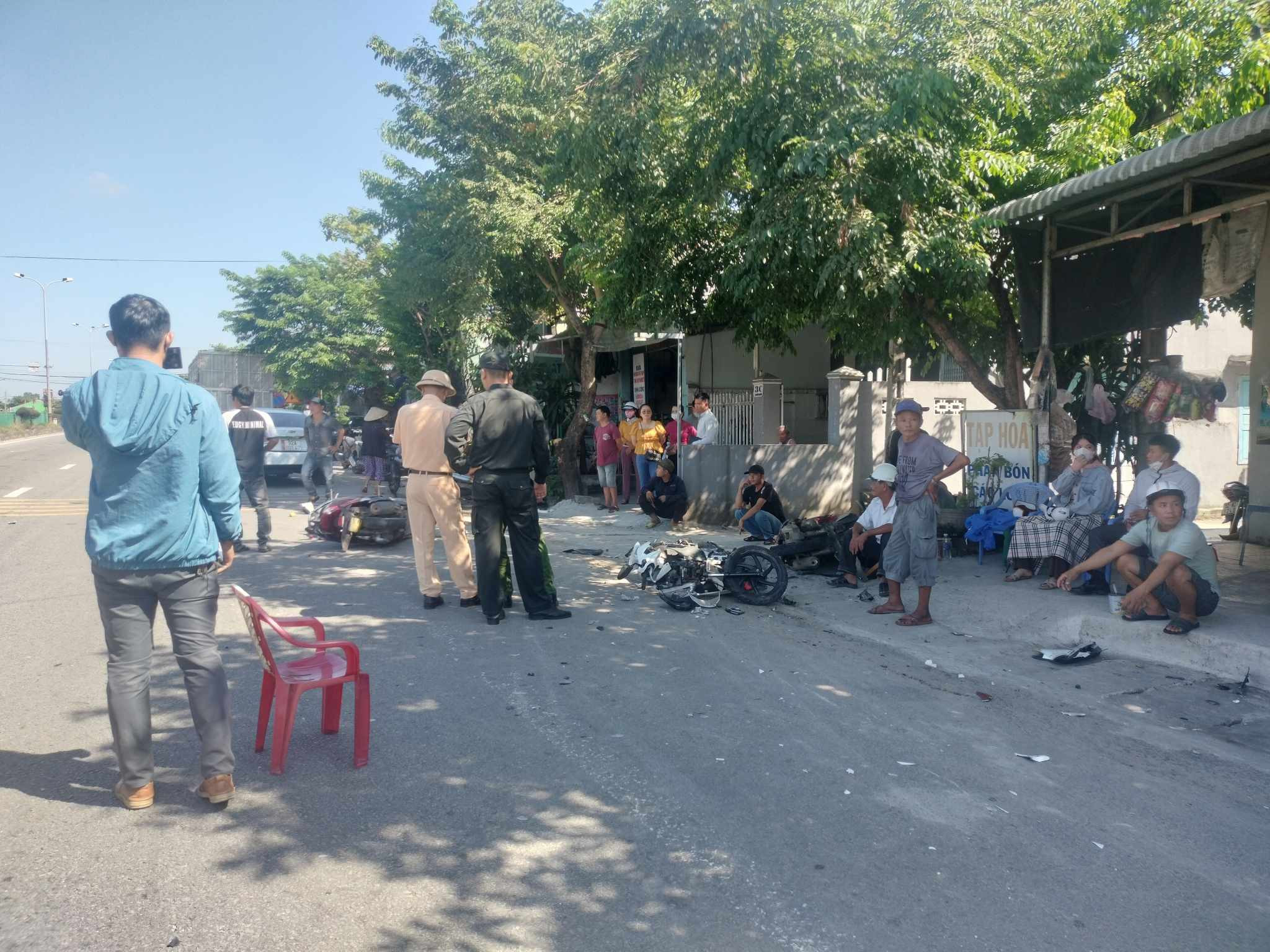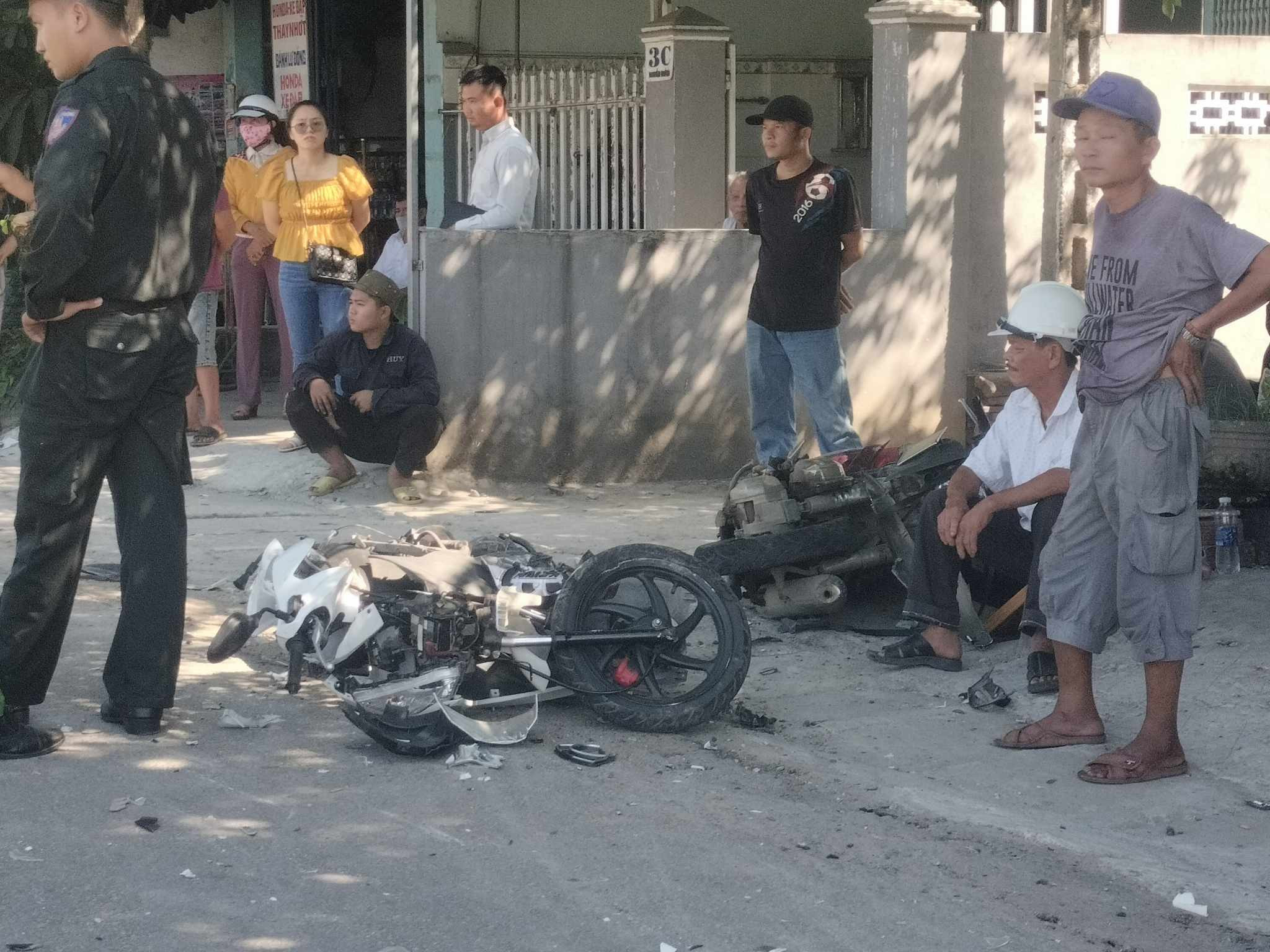 Cú va chạm mạnh khiến 1 người bị gãy chân, đã được đưa đến bệnh viện cấp cứu, 4 xe máy hư hỏng nặng.