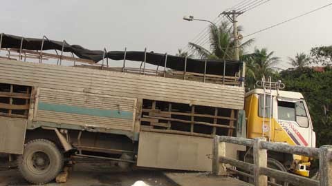 Chiếc xe 60N-8519 tông bể lan can cầu và suýt rơi xuống sông