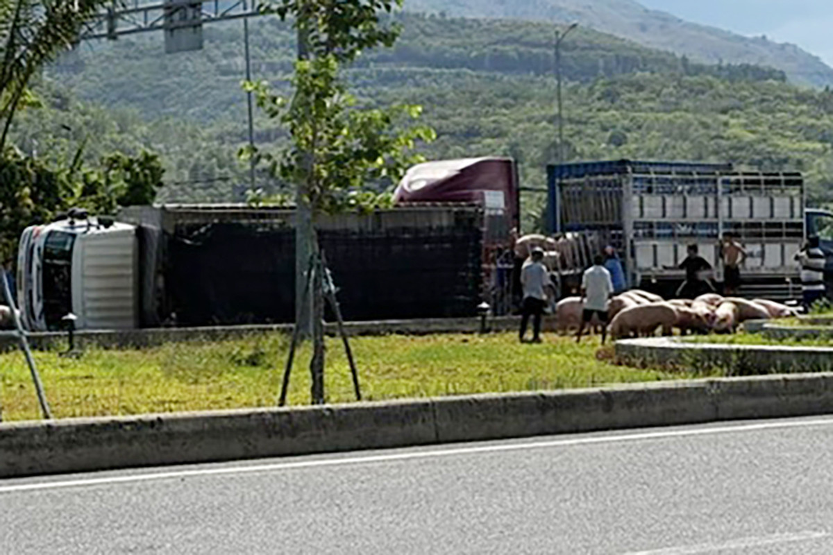 Sau sự cố, thùng xe bị bung, đàn lợn văng ra ngoài, chạy tràn trên đường, xe tải hư hỏng. Tài xế phụ xe may mắn thoát nạn. Lúc sau, một xe khác đến hiện trường đưa đàn lợn đi nơi khác.