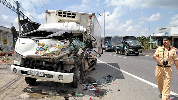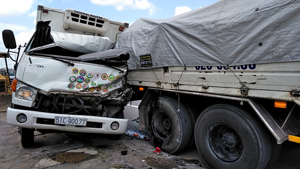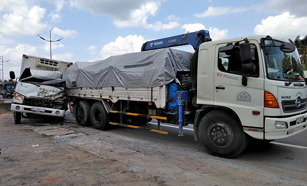 Sau đó, xe ô tô tải mang BKS 51C-900.77 (chưa rõ tên tuổi tài xế) điều khiển đang lưu thông cùng chiều từ phía sau đi tới, do phải né tránh một xe ô tô khác đang lưu thông trên đường nên lao vào lề đường rồi va chạm vào phần đuôi xe tải cẩu.