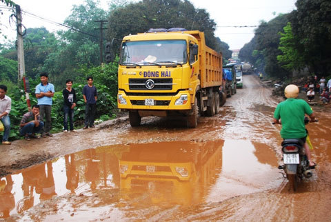 Đặc biệt, trên đoạn đường chạy qua xã Xuân Giao, xe chở quặng sắt quá tải đã cày xới, tạo nên hàng loạt ổ trâu, ổ voi; mỗi khi trời mưa nước che lấp, tạo nên những cái bẫy rất nguy hiểm.