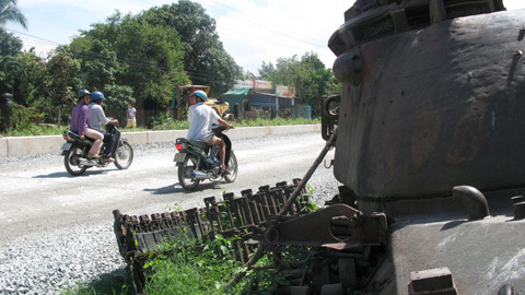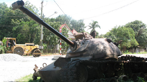 Chiếc xe tăng này nằm bên vệ đường và theo dự định nó sẽ được di dời để nhường chỗ cho con đường mới đang được thi công, mở rộng.