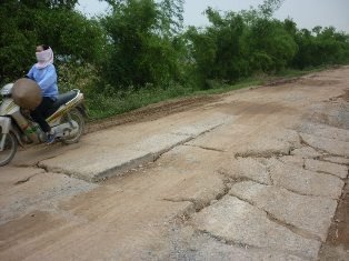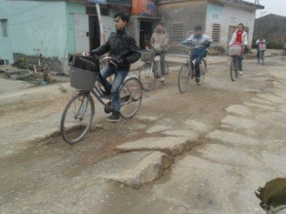 Con đường lồi lõm khiến giao thông rất khó khăn |