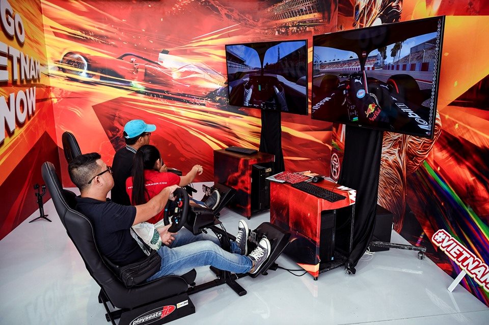 Ngoài ra, các fan tốc độ không thể bỏ qua khu vực F1 được bố trí ngay trong không gian gian hàng. VinFast mang đến cơ hội trải nghiệm cảm giác của một tay đua Công thức 1 thông qua trò chơi đua xe giả lập. Hình ảnh đường đua chính là Mỹ Đình, nơi sẽ diễn ra chặng đua F1 VinFast Vietnam Grand Prix vào tháng 4/2020.