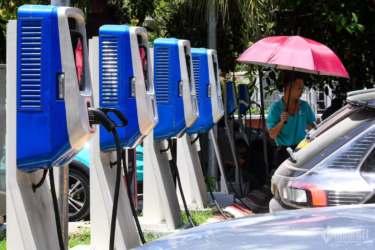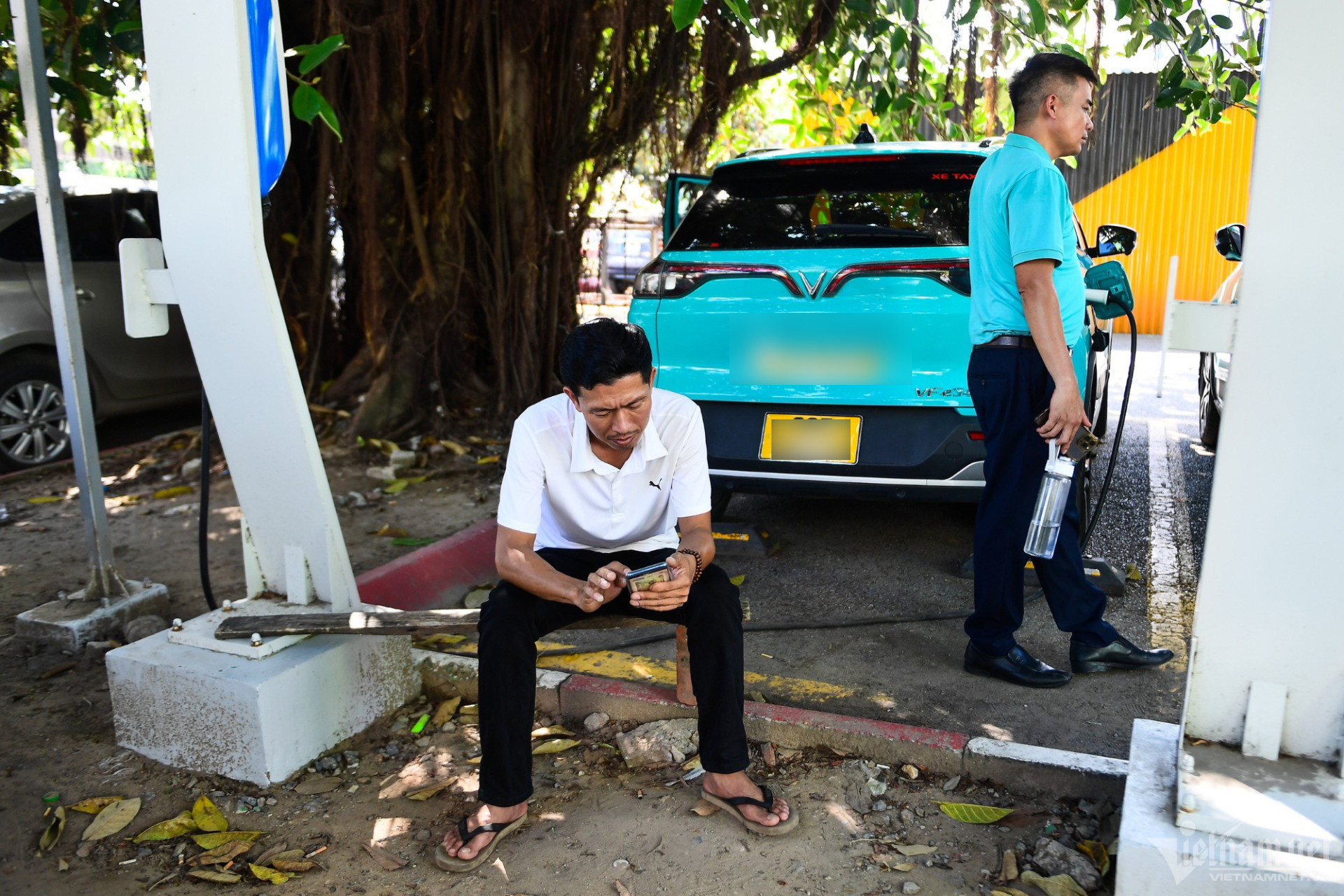 Hiện tại, TTTM Big C Thăng Long có 8 trụ sạc. "Anh em lái xe chỉ sạc ở các trụ công suất lớn như 360kW, 30kW để tiết kiệm thời gian đi lại, chứ sạc trụ 11kW phải 6 tiếng mới đầy. Tuy có nhiều trụ sạc ở các TTTM khác nhưng nhiều người e ngại vì vào đó mất thêm tiền gửi xe nên thường ra đây đợi", anh Hiếu nói thêm.
