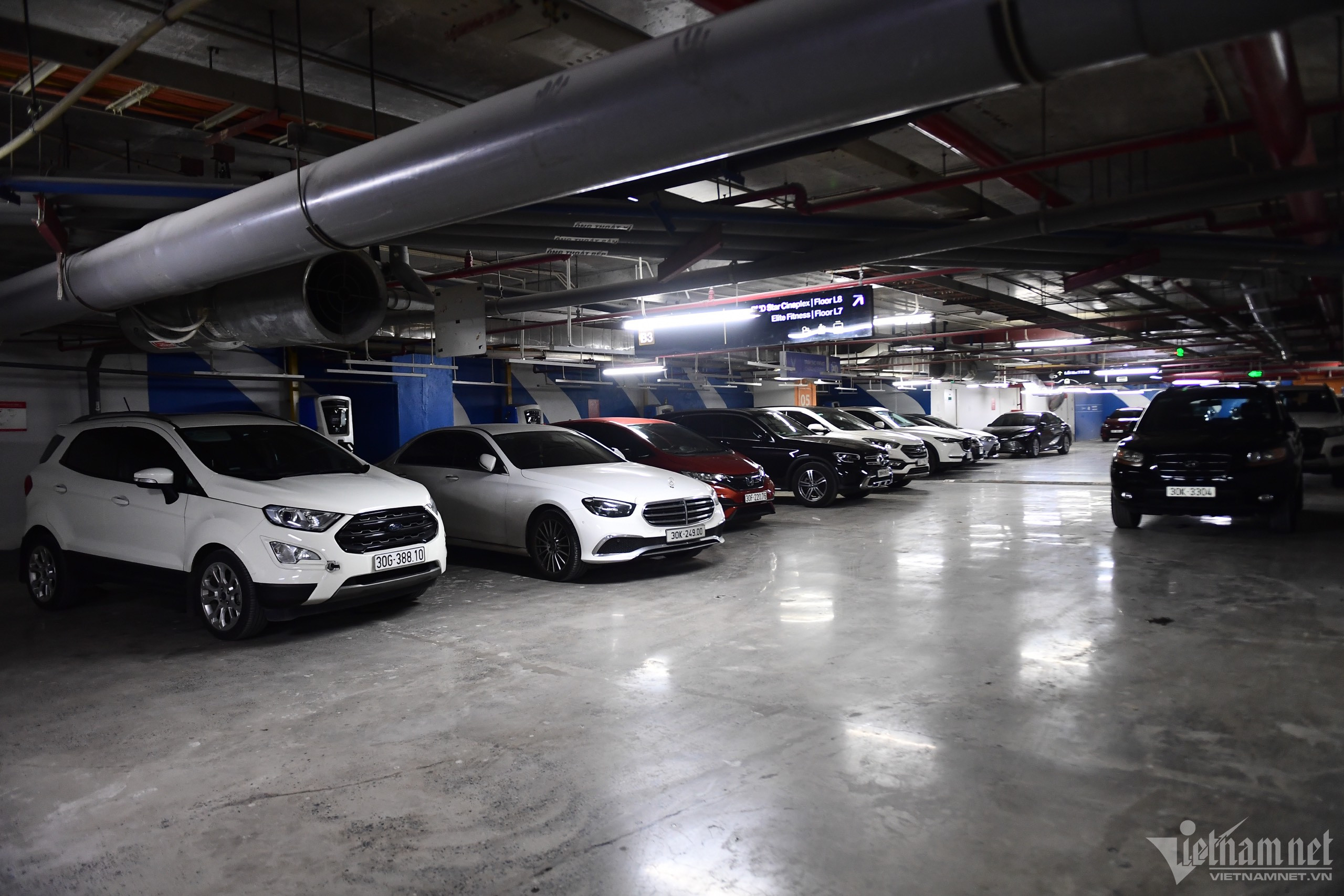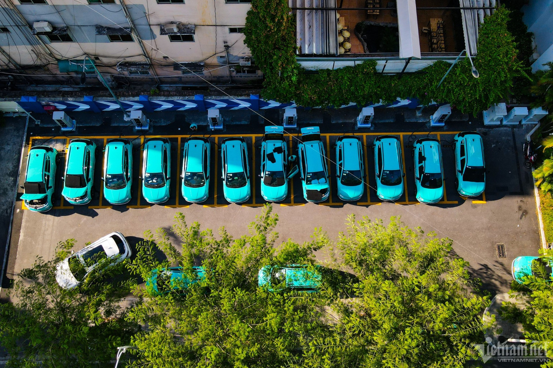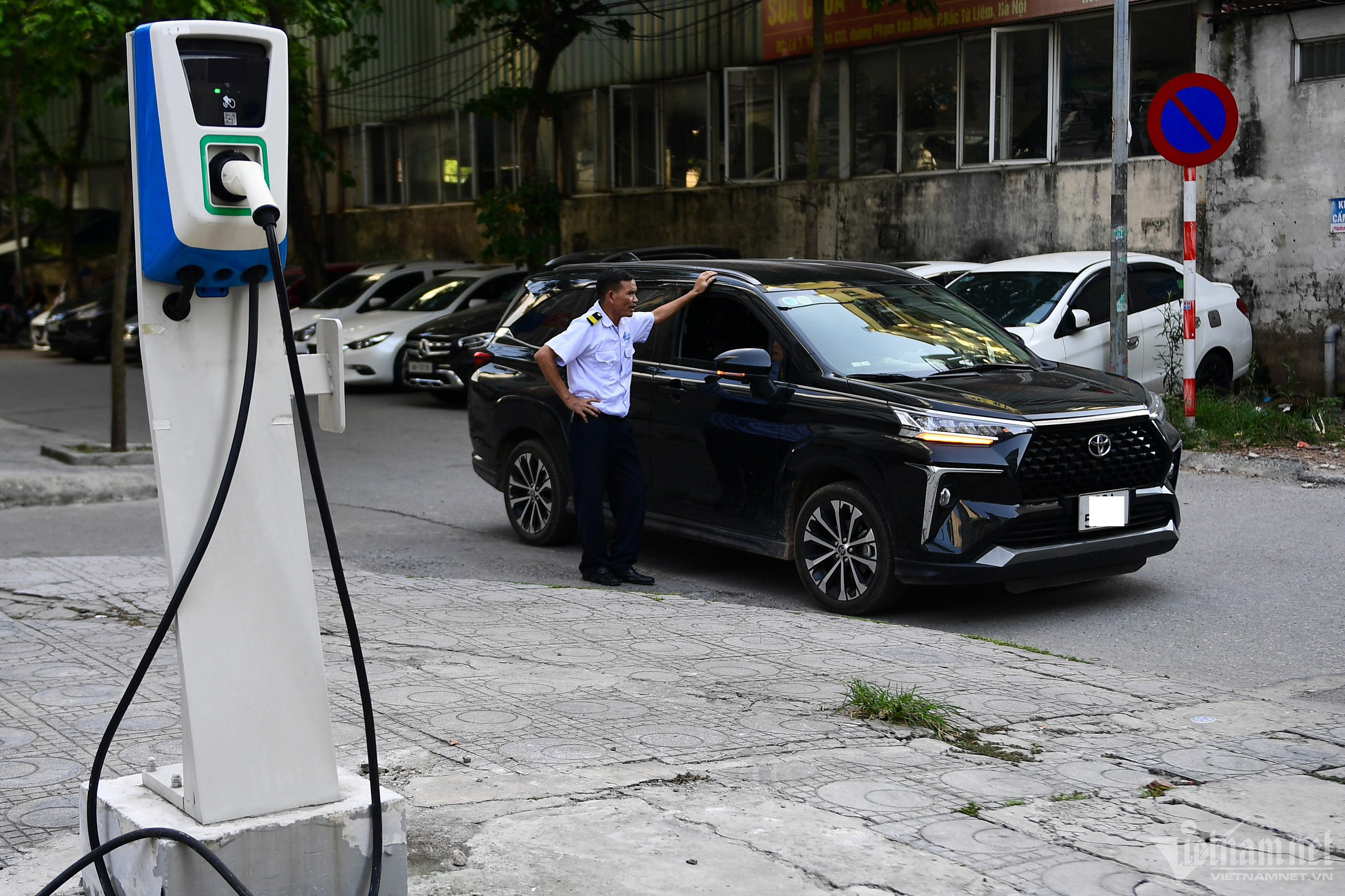 Điểm sạc xe điện tại Khu đô thị Times City luôn trong xếp kín xe. Nhiều tài xế taxi điện vào đây chờ sạc.