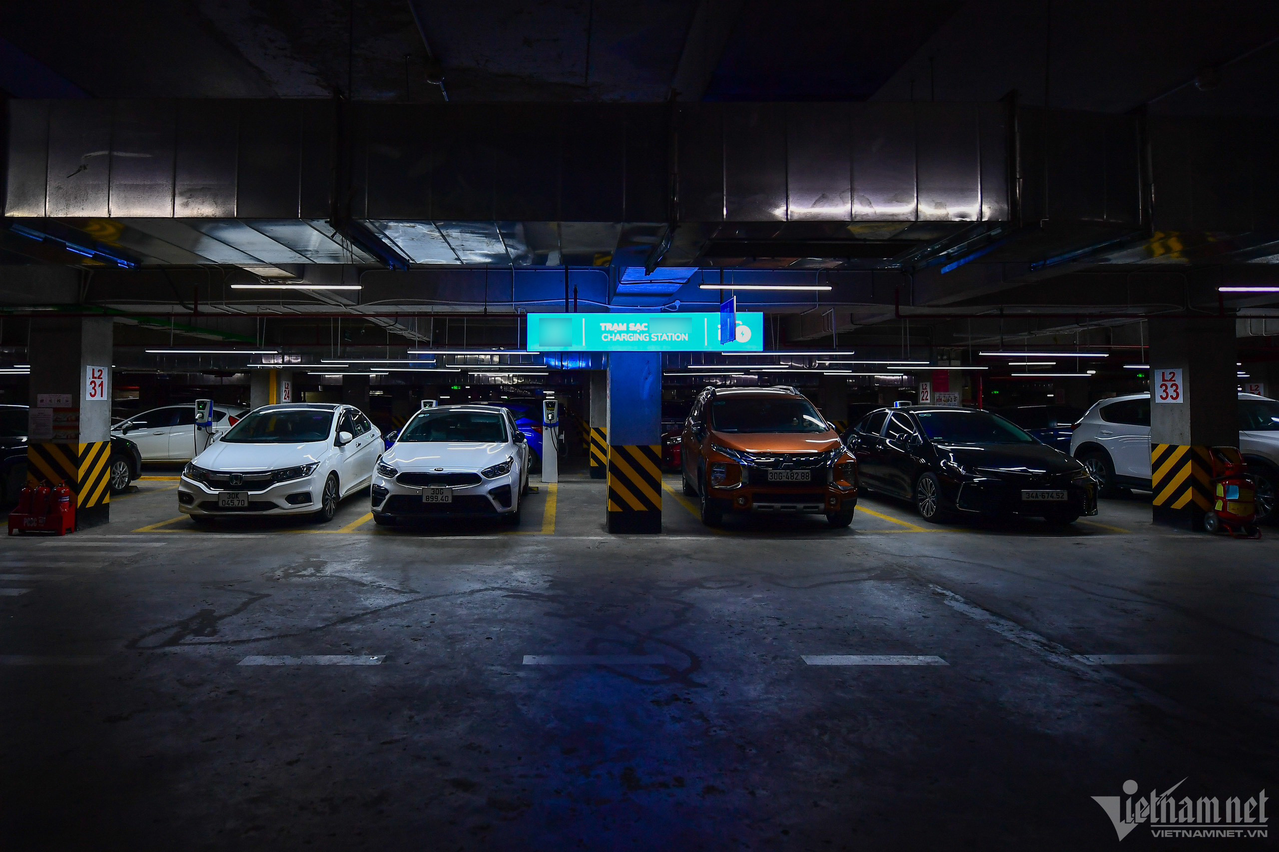 Theo khảo sát của phóng viên, bãi đỗ ô tô tại TTTM BigC Thăng Long (quận Cầu Giấy) có 8 trụ sạc điện ô tô.