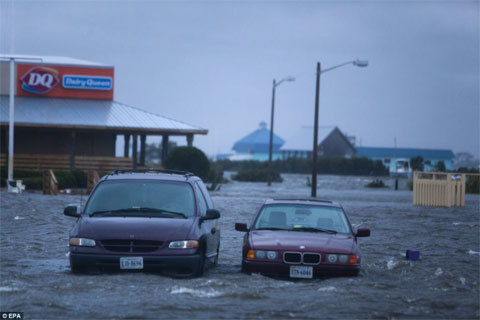 Xe cộ chìm trong làn nước ở bắc Carolina.