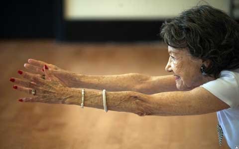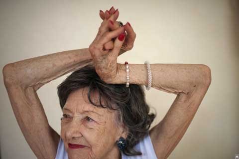 Có lẽ, yoga chính là bí quyết giúp bà Porchon-Lynch luôn tươi trẻ.