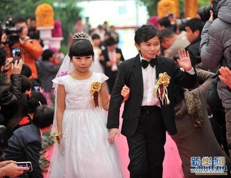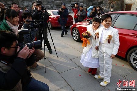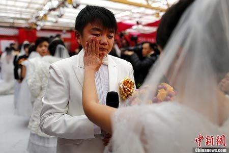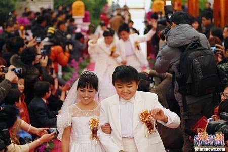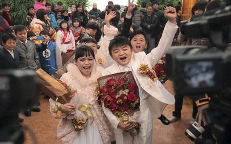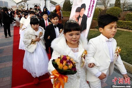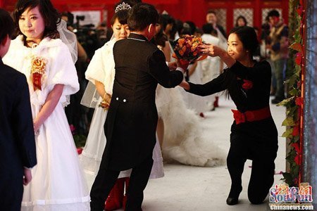 Hàng ngàn người đã đến chúc mừng cho hạnh phúc của 7 cặp đôi tới từ đoàn múa rối Long Tại Thiên trong một đám cưới tập thể được tổ chức tại thủ đô Bắc Kinh (Trung Quốc) hôm 1/12 vừa qua.