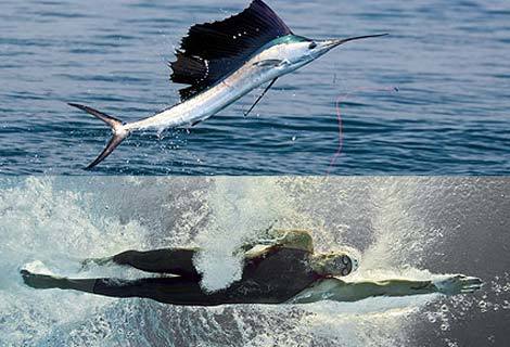 Thành tích ấn tượng của vận động viên bơi lội người Pháp này tính ra chỉ khoảng 8,5 km/giờ. Nếu Frédérick cùng thi với cá cờ - loài cá bơi nhanh nhất đại dương, với chiếc vây lưng đặc biệt –  thì cũng giống như rùa đua với thỏ.