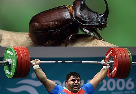 Bạn có thể nghĩ ngay rằng trong cuộc so tài này thì con người chúng ta đã toàn thắng vẻ vang. Tuy nhiên, hãy nhìn lại và so sánh kích thước cũng như khối lượng giữa tay lực sĩ khỏe nhất hành tinh và loài bọ nhỏ xíu này. Nhà vô địch Olympic bộ môn cử tạ có trọng lượng cơ thể khoảng 163kg, như vậy anh ta có thể nâng được một khối lượng gần gấp đôi trọng lượng cơ thể mình. Còn bọ tê giác có thể nâng một khối lượng gấp đến 850 lần trọng lượng cơ thể của nó, tương đương với việc Hossein nâng một đầu máy xe lửa.