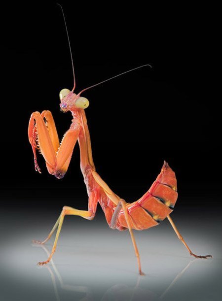 Con bọ ngựa hoa quỷ châu Phi này đang giơ các chân trước dọa nạt kẻ khác.