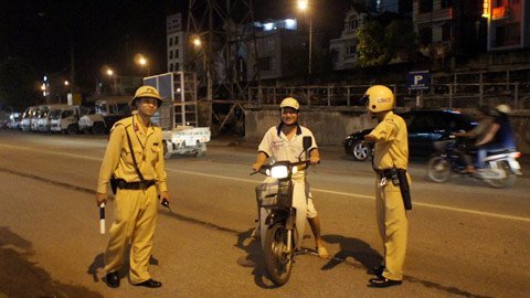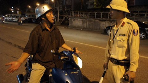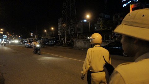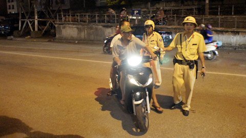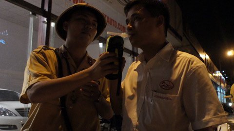 Tổ công tác gồm 8 người, trong đó có 2 chiến sỹ cải trang làm nhiệm vụ tuần tra, xem xét người tham gia giao thông vi phạm để báo qua bộ đàm cho các chiến sỹ còn lại đứng cách các quán nhậu chừng 50m xử lý.