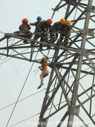 để đưa một cô gái khỏa thân bị điện giật đang mắc kẹt trên trạm điện cao