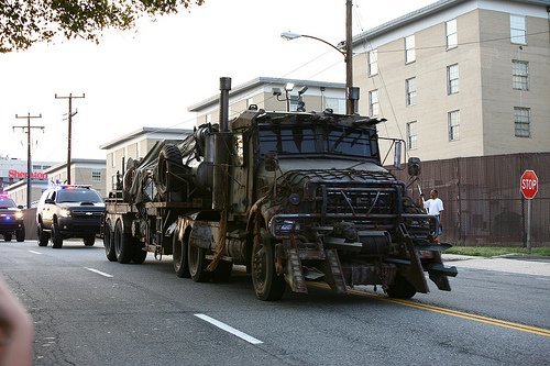 Thuộc vào hạng xe quân sự, chiếc Mack Titan 10 bánh quân sự chở xăng sẽ hóa thân vào nhân vật Megatron với chiếc vải phủ cực ấn tượng.