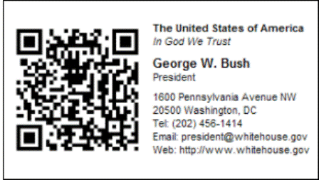 Danh thiếp của tổng thống Mỹ George Bush có lẽ là một trong những tấm danh thiếp độc đáo nhất trong các chính khách bởi thông thường giới quan chức thường có những tấm danh thiếp mang thiết kế rất đơn giản, còn tấm danh thiếp của George Bush có cả một tấm hình khó hiểu trông như mã nhận dạng.