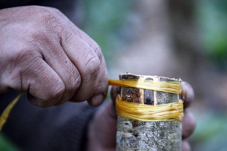 Những gốc đào rừng có giá từ 1 đến 3 triệu được anh Thế Anh tuyển chọn từ các tỉnh Lạng Sơn, Mộc Châu, Sơn La đem về Hà Nội. Sau khi “tuyển” được những gốc đào rừng đẹp theo ý đồ riêng, người trồng đào bắt đầu chọn những mắt đào bích để ghép.