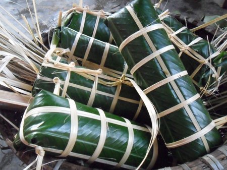 | Phải người khéo tay mới có thể gói được chiếc bánh tét |