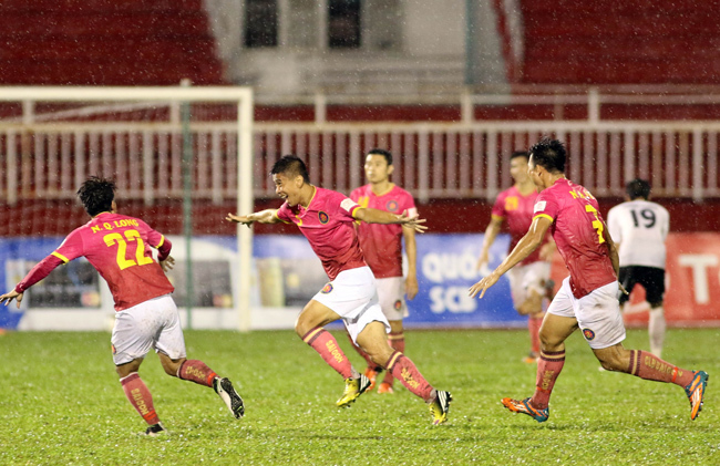 Từ vạch giữa sân, hậu vệ từng được gọi lên ĐTQG dưới thời HLV Miura sau khi không chế bóng một nhịp đã tung ra pha dứt điểm thẳng về phía khung thành, cùng lúc thủ môn của Long An lên hơi cao để ghi bàn nâng tỉ số lên 3-0 cho đội nhà.