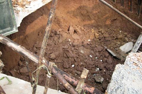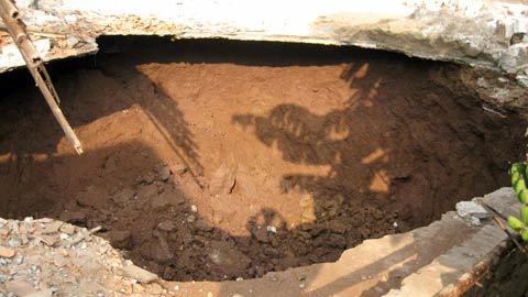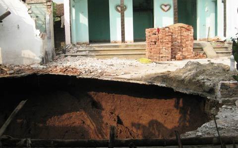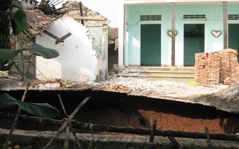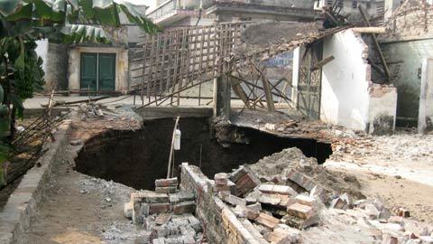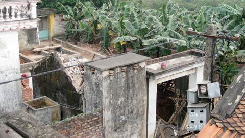 | Hố tử thần xuất hiện đã nuốt chửng một căn nhà bếp của gia đình anh Bình. |