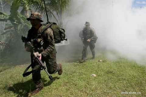 Khoảng 100 lính Mỹ và Philippines hôm 25/4 đã diễn tập tấn công bãi biển ở