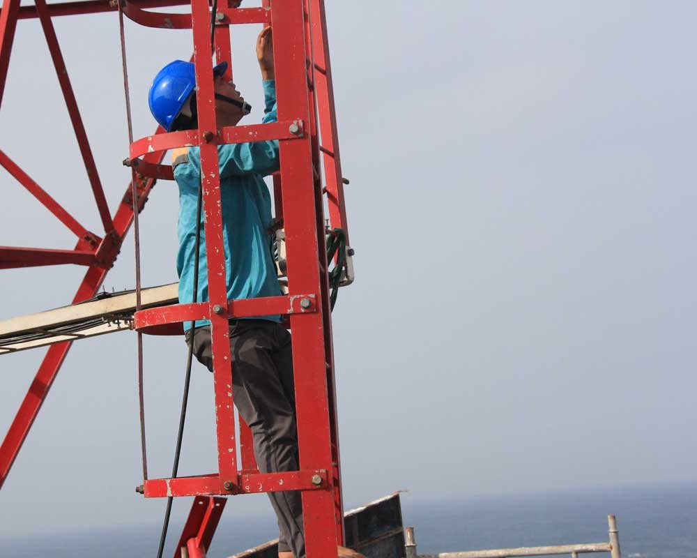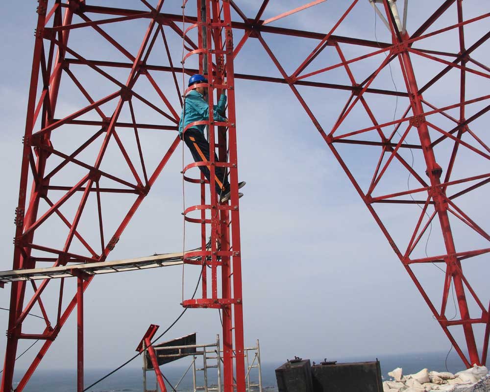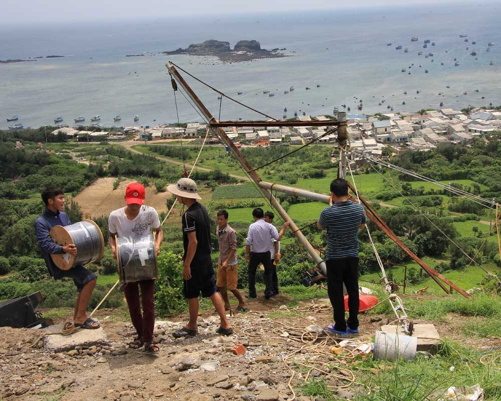 Viettel phải dùng tời để kéo các thiết bị viba lên đỉnh núi cáp nhất ở đảo Phú Quý