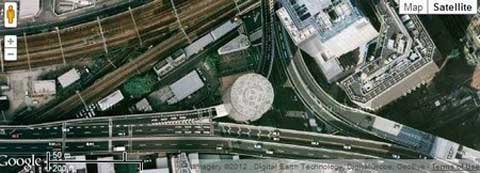 Con đường cao tốc được một cấu trúc vây quanh để bảo vệ tòa nhà khỏi tiếng ồn và những rung động.