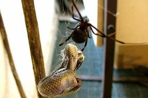 Vết đỏ trên bụng của rắn là bằng chứng về nơi con nhện bắt đầu rỉa thịt rắn.