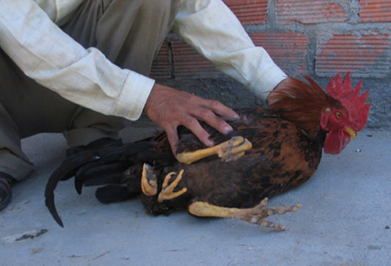 con gà trống này có hai chân trước mọc ở vị trí bình thường, còn hai chân sau