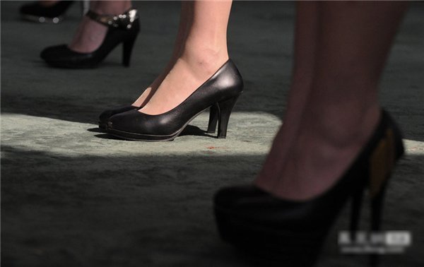 Các tình nguyện viên sử dụng nhiều loài giày có độ cao khác nhau để có được độ cao đồng đều.