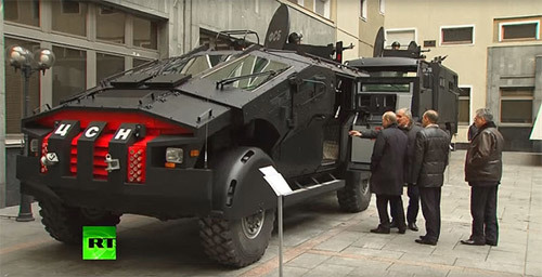 Theo báo Russia Today, dàn xe khủng này gồm chiếc ZiL Karatel mặt đỏ mũi hếch có biệt danh "Kẻ trừng phạt". Thiết kế của nó khá giống với chiếc xe Batmobile huyền thoại trong bộ phim hành động nổi tiếng Người Dơi.