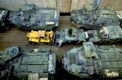 Xe bọc thép lưỡng cư (AAV) với khả năng vừa lội nước vừa tác chiến trên cạn là phương tiện cơ động của Thủy quân Lục chiến Mỹ trong các sứ mệnh đổ bộ và các cuộc chiến trên bộ.