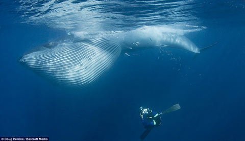 Nhiếp ảnh gia dưới nước, Doug Perrine khi du lịch tới bán đảo Baja của Mexico đã chụp được những bức ảnh tuyệt đẹp về cảnh cá voi Bryde săn mồi.